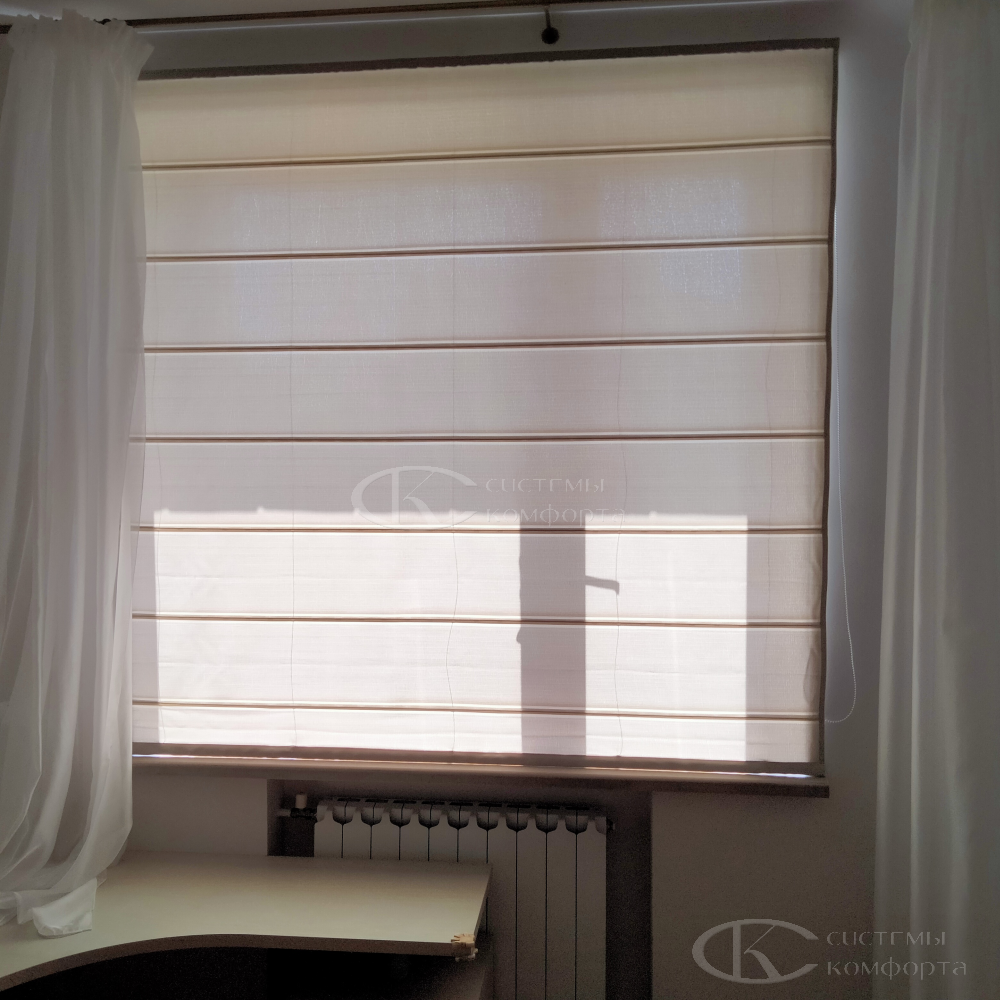 Это тканевые полотна, которые при подъеме не наматываются на вал, а складываются в ровные, благородные горизонтальные складки, создавая мягкий и уютный силуэт у окна. Такой вариант становится идеальным выбором для помещений, где хочется подчеркнуть теплоту и уют, не перегружая пространство объемными портьерами. Римские шторы великолепно смотрятся в спальнях, кабинетах, гостиных в стиле прованс или классика. Они часто выполняются из натуральных, приятных на ощупь тканей – льна, хлопка, что добавляет интерьеру экологичности и тактильного комфорта. По своей функциональности они близки к рулонным шторам, но дарят совершенно иное, более «домашнее» и теплое визуальное восприятие.
