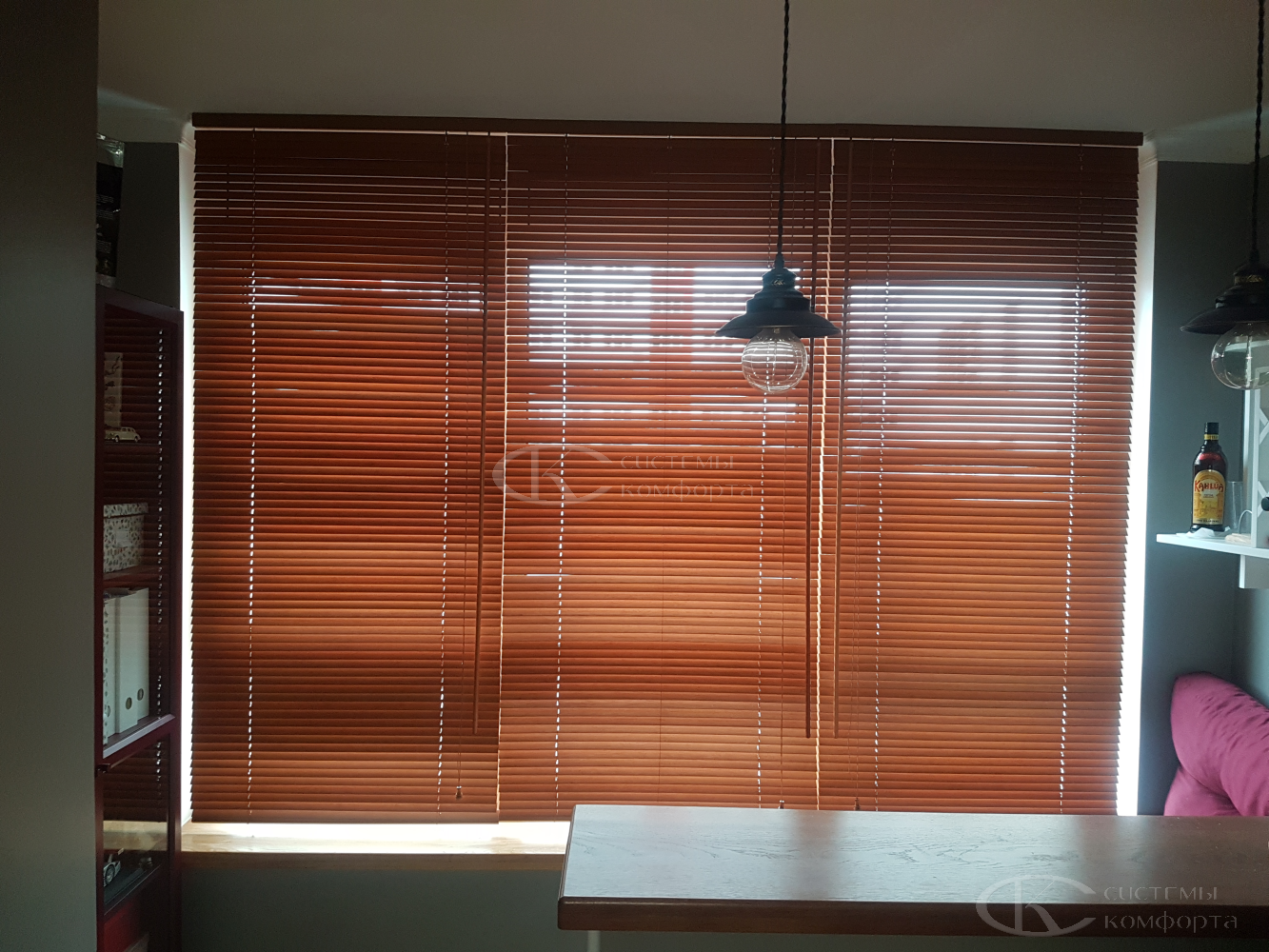 - Деревянные жалюзи. Элитный сегмент с неповторимой аурой экологичности. Изготавливаются из легких пород. Создают в комнате уют, тепло, снижают уровень отраженного шума. Требуют аккуратного ухода и защиты от высокой влажности. Идеальный выбор для гостиной или спальни в эко- или классическом стиле.