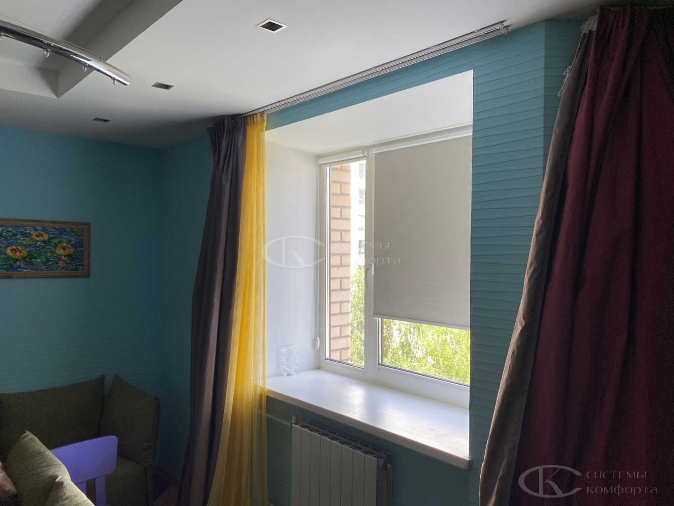 Эти системы представляют собой цельное полотно из ткани, которое наматывается на вал, расположенный вверху оконного проема. Управление осуществляется с помощью цепочного, пружинного механизма или современного электропривода, что делает процесс регулировки невероятно легким и удобным. Их главная «фишка» – это аккуратный сверток вверху и абсолютно ровное, натянутое полотно при опускании, что создает безупречно строгий и лаконичный вид.