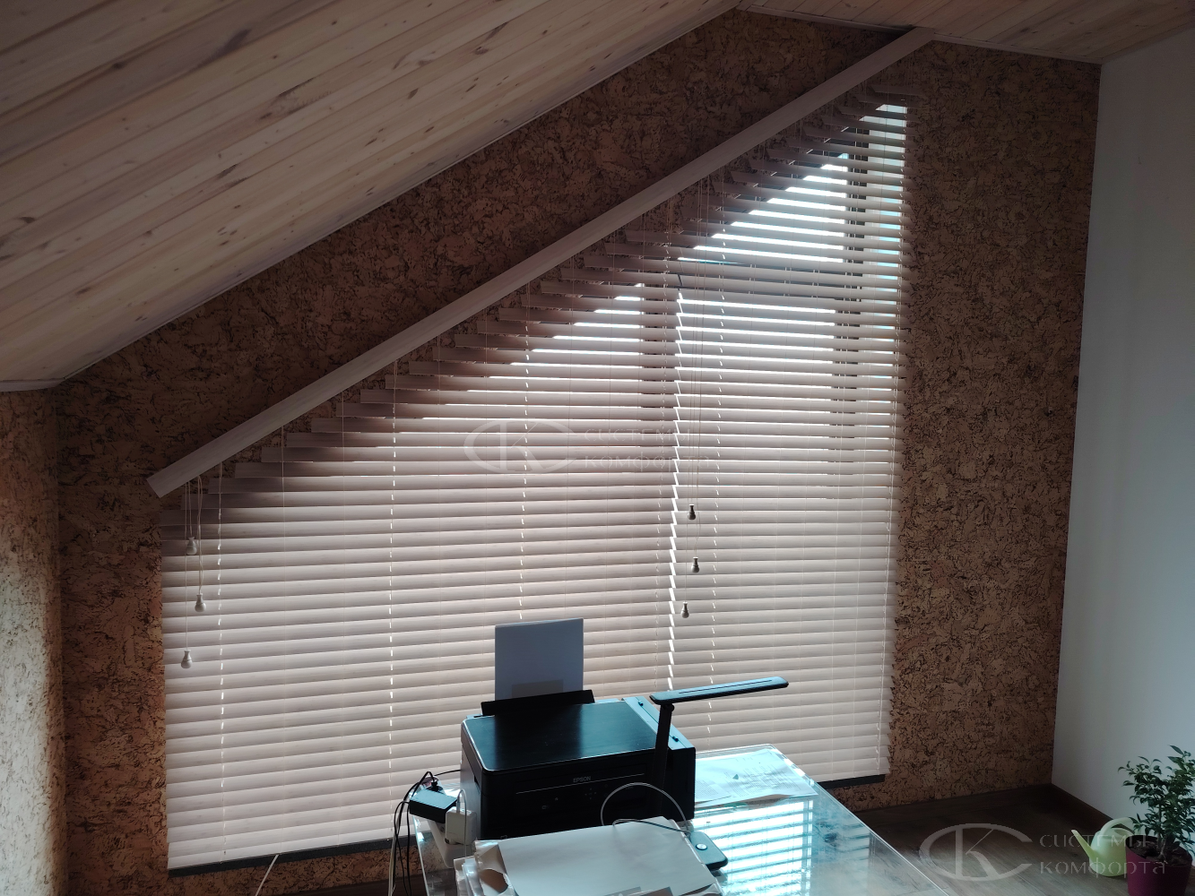 Компания «Системы комфорта» изготавливает жалюзи на треугольные окна и на другие проемы нестандартной формы по индивидуальному заказу. Чаще всего они встречаются в мансарде: окно треугольной формы размещается на фронтоне и помогает обеспечить естественное освещение подкровельного пространства. Однако и в других помещениях могут быть оконные проемы необычной формы, для которых необходимо изготовить персональные системы управления светом.